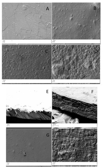 Surface and bulk morphologies of all crosslinked or non-crosslinked membranes were investigated by field emission scanning electron microscopy (FESEM, AURIGA Carl Zeiss AG, Oberkochen, Germany). For analysis, the membranes were fractured, gold sputtered, and observed.