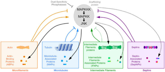 Benoit, B.; Baillet, A.; Poüs, C. Cytoskeleton and Associated Proteins: Pleiotropic JNK Substrates and Regulators. Int. J. Mol. Sci. 2021, 22, 8375. https://doi.org/10.3390/ijms22168375