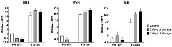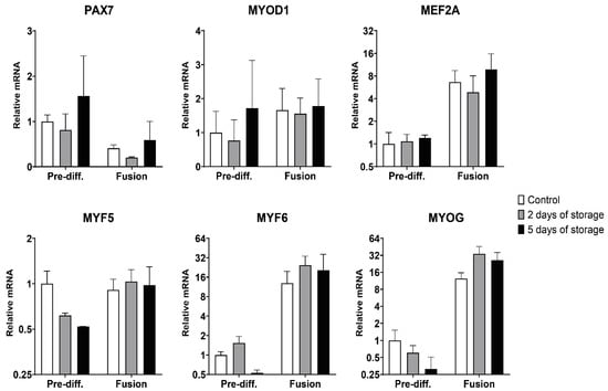 2.3. Myogenic and Muscle-Specific mRNA Expression Profiles of Bovine Satellite Cells Isolated from Fresh and Stored Muscle Tissue