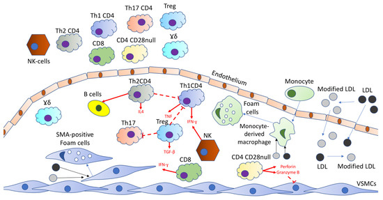 NK-T—Natural Killer T cells—is a precise subset of T cells expressing both natural killer and T cell markers. Stimulation by lipid antigens, which is mediated via the MHC-I-like CD1d molecule, activates NK-T; this is of additional interest in the study of atherosclerosis [36]. The cells that are contained in the human atheroma exhibit CD1 and NK-T cells, which indicates the proatherogenic role of this subtype of T cells [11].