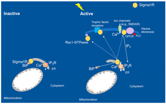 Sigma1R binds diverse classes of pharmacological ligands [51]. Some of the major high-affinity Sigma1R ligands function as pharmacological agonists or antagonists to result in a physiological response, whereas modulatory ligands have no pharmacological activity by themselves but exert positive or negative modulatory effects when certain physiological processes are activated, or synergistically affect the activity of subtherapeutic concentrations of Sigma1R agonists or antagonists [51,67].