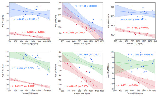 2.4. Correlation between Plasma GA Content and Reduction of RBC Oxidative Parameters