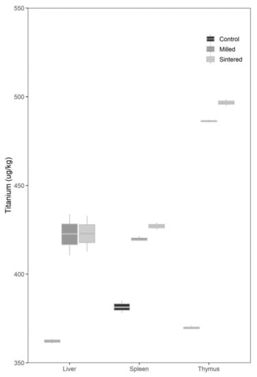 - Heringa, M.; Peters, R.; Bleys, R.; Van Der Lee, M.; Tromp, P.; Van Kesteren, P.; Van Eijkeren, J.; Undas, A.; Oomen, A.; Bouwmeester, H. Detection of titanium particles in human liver and spleen and possible health implications. Part. Fibre Toxicol. 2018, 15, 1–9. [Google Scholar] [CrossRef] [PubMed]