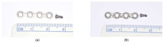 - Matthew, I.R.; Frame, J.W. Release of metal in vivo from stressed and nonstressed maxillofacial fracture plates and screws. Oral Surg. Oral Med. Oral Pathol. Oral Radiol. Endod. 2000, 90, 33–38. [Google Scholar] [CrossRef] [PubMed]