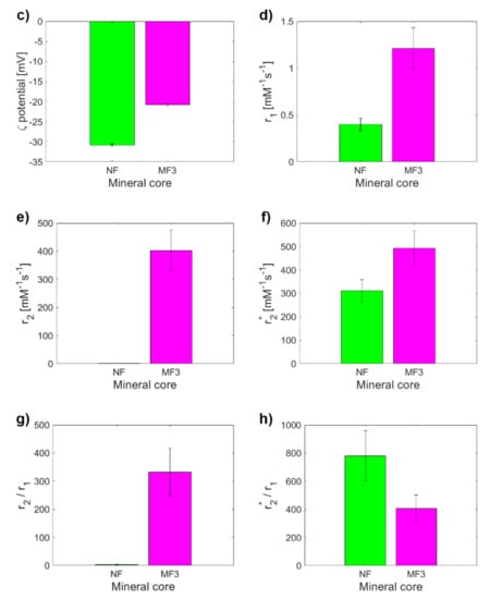 - Antal, I.; Strbak, O.; Khmara, I.; Koneracka, M.; Kubovcikova, M.; Zavisova, V.; Kmetova, M.; Baranovicova, E.; Dobrota, D. MRI relaxivity changes of the magnetic nanoparticles induced by different amino acid coatings. Nanomaterials 2020, 10, 394. [Google Scholar] [CrossRef] [Green Version]