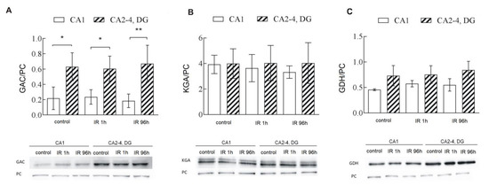 Beręsewicz-Haller, M.; Krupska, O.; Bochomulski, P.; Dudzik, D.; Chęcińska, A.; Hilgier, W.; Barbas, C.; Zablocki, K.; Zablocka, B. Mitochondrial Metabolism behind Region-Specific Resistance to Ischemia-Reperfusion Injury in Gerbil Hippocampus. Role of PKCβII and Phosphate-Activated Glutaminase. Int. J. Mol. Sci. 2021, 22, 8504. https://doi.org/10.3390/ijms22168504