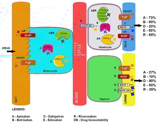 - Shen, H.; Yao, M.; Sinz, M.; Marathe, P.; Rodrigues, A.D.; Zhu, M. Renal Excretion of Dabigatran: The Potential Role of Multidrug and Toxin Extrusion (MATE) Proteins. Mol. Pharm. 2019, 16, 4065–4076. [Google Scholar] [CrossRef] [PubMed]