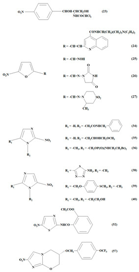 - Patterson, S.; Fairlamb, A.H. Current and future prospects of nitro-compounds as drugs for trypanosomiasis and leishmaniasis. Curr. Med. Chem. 2019, 26, 4454–4475. [Google Scholar] [CrossRef]