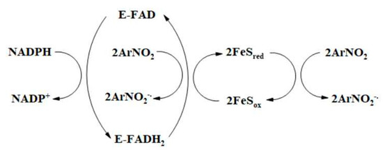 3.1. Single- and Mixed Single- and Two-Electron Reduction in Nitroaromatic Compounds by Flavoenzymes Dehydrogenases-Electrontransferases