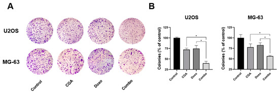 We previously described that CGA strongly decreases the clonogenic potential of both U2OS and MG-63, whereas several findings report the Doxo ability to restrict colony formation in different cancer models, including OS [23,33].