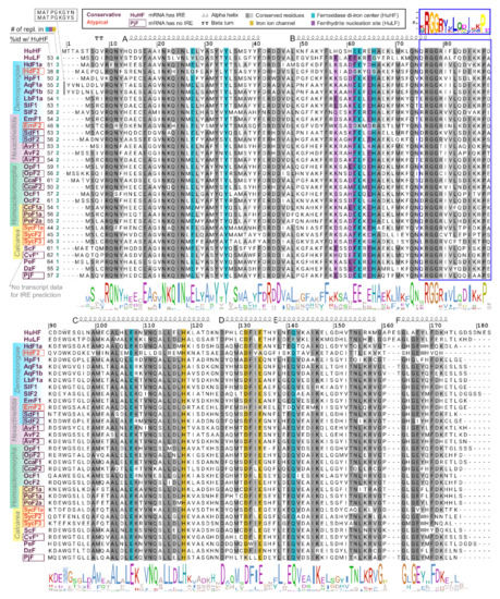 - Li, M.; Saren, G.; Zhang, S. Identification and Expression of a Ferritin Homolog in Amphioxus Branchiostoma Belcheri: Evidence for Its Dual Role in Immune Response and Iron Metabolism. Comp. Biochem. Physiol. Part B Biochem. Mol. Biol. 2008, 150, 263–270. [Google Scholar] [CrossRef]