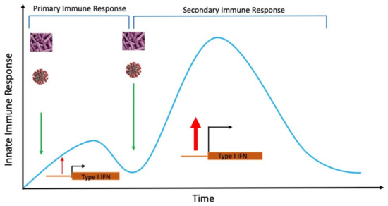 Vaccination to train host immunity improves the anti-viral or bacterial host defense by enhancing the innate immune response. Type I IFN response enhances primary infection, which is further enhanced by several folds after secondary infection.