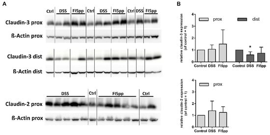 2.2. Prophylactic FI5pp-Treatment Suppresses Reduction of Tight Junction Protein Expression in DSS-Induced Colitis