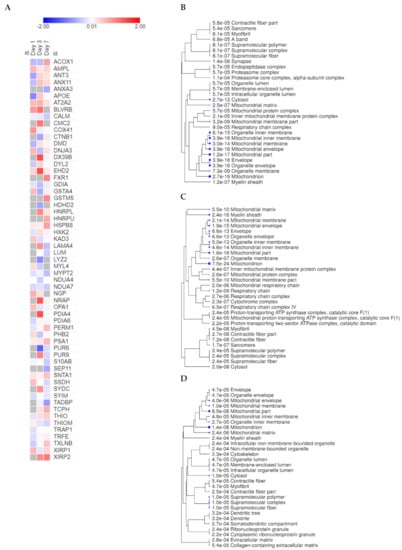 2.3. Cross-Comparative Analysis Identifies Mitochondrial Compartments as the Main Cellular Components of DEPs