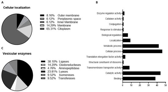 4.5. OMVs Protein Profile by Tandem Mass Spectrometry (MS/MS)