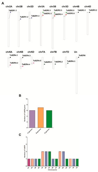 2.2. Chromosomal Distribution of TaBZR Genes