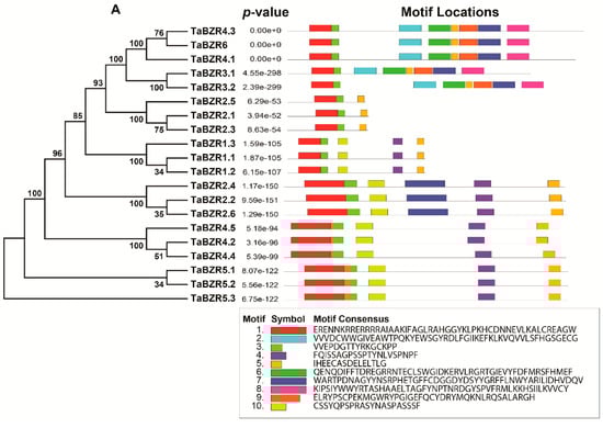 2.3. Gene Structure and Conserved Motif Analysis of TaBZR Genes