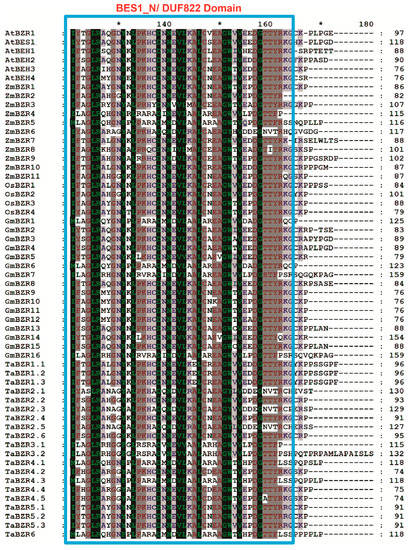 Kesawat, M.S.; Kherawat, B.S.; Singh, A.; Dey, P.; Kabi, M.; Debnath, D.; Saha, D.; Khandual, A.; Rout, S.; Manorama; et al. Genome-Wide Identification and Characterization of the Brassinazole-resistant (BZR) Gene Family and Its Expression in the Various Developmental Stage and Stress Conditions in Wheat (Triticum aestivum L.). Int. J. Mol. Sci. 2021, 22, 8743. https://doi.org/10.3390/ijms22168743