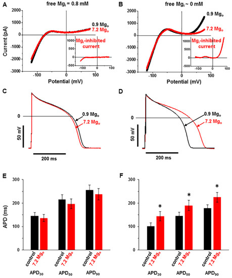 - Zhang, S.; Sawanobori, T.; Adaniya, H.; Hirano, Y.; Hiraoka, M. Dual effects of external magnesium on action potential duration in guinea pig ventricular myocytes. Am. J. Physiol. Heart Circ. Physiol. 1995, 268, H2321–H2328. [Google Scholar] [CrossRef] [PubMed]