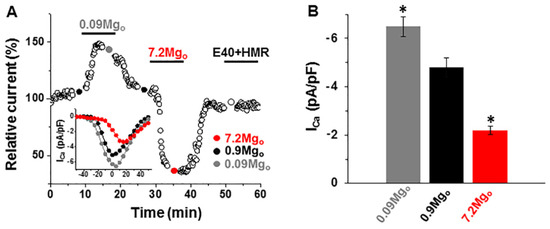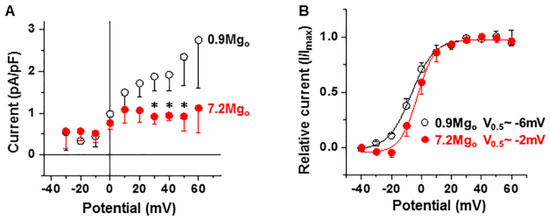 2.3. Effects of High Extracellular [Mg2+] on ICa-L and IK