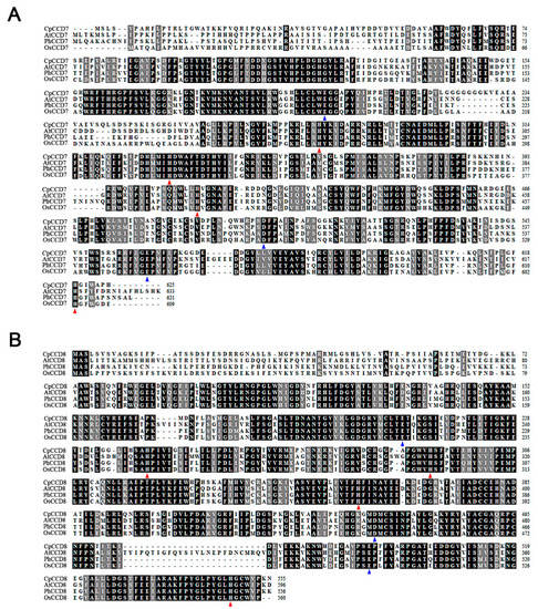 2.1. Cloning and Phylogenetic Analysis of CpCCD7 and CpCCD8
