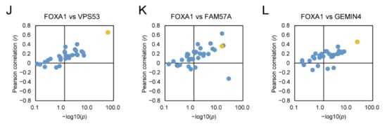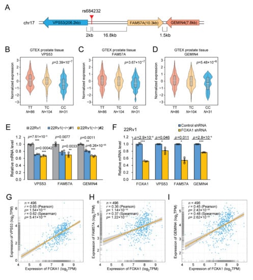 2.6. rs684232 Regulates Gene Expression of VPS53, FAM57A, and GEMIN4 through FOXA1