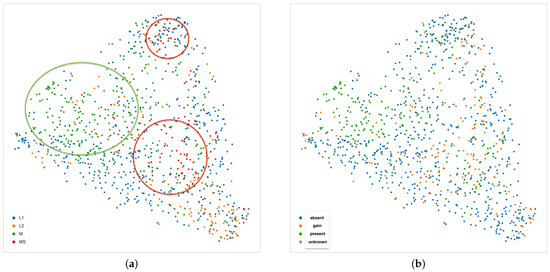 - McInnes, L.; Healy, J.; Saul, N.; Grossberger, L. UMAP: Uniform Manifold Approximation and Projection. J. Open Source Softw. 2018, 3, 861. [Google Scholar] [CrossRef]