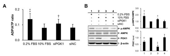 2.3. Silencing PGK1 Increased Intracellular Adenosine Diphosphate (ADP)/ATP Ratio to Trigger Activation of Adenosine 5’-Monophosphate (AMP)-Activated Protein Kinase (AMPK)