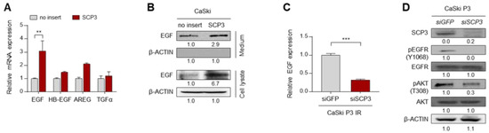 2.2. SCP3 Triggers EGFR Signaling through Transcriptional Activation of EGF