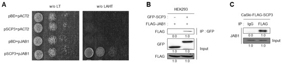 2.5. SCP3 Induces EGF Transcription through Physical Interaction with JAB1