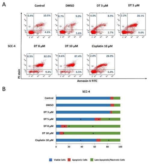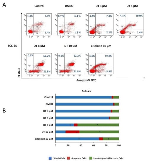 2.2. DT-Induced Apoptosis in HNSCCs Cells