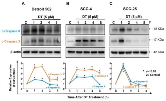 2.3. DT Increased Expression of Caspase-3 and Caspase-8 in HNSCCs Cells