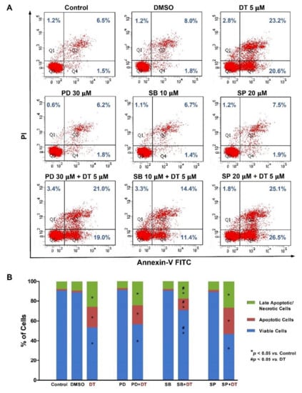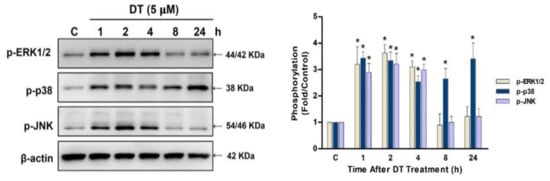 2.4. p38 Signaling Regulated DT-Induced Apoptosis in Detroit 562 Cells