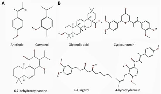 - Ben-Shabat, S.; Yarmolinsky, L.; Porat, D.; Dahan, A. Antiviral Effect of Phytochemicals from Medicinal Plants: Applications and Drug Delivery Strategies. Drug Deliv. Transl. Res. 2020, 10, 354–367. [Google Scholar] [CrossRef]