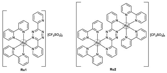 In particular, both mono- and dinuclear Ru(II)–polypyridyl complexes have attracted attention for the development of new therapeutic agents against cancer, and this fact is very interesting since the compound TLD-1433 (Figure 1) is in clinical trials for the treatment of noninvasive bladder cancer of the muscles (clinical trial NCT03945162) [].