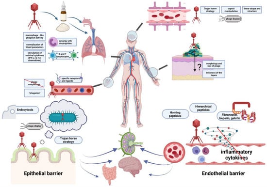 The summary of barriers that must be crossed by phages to penetrate tissues and organs of animals and humans is summarized in Figure 1.
