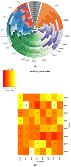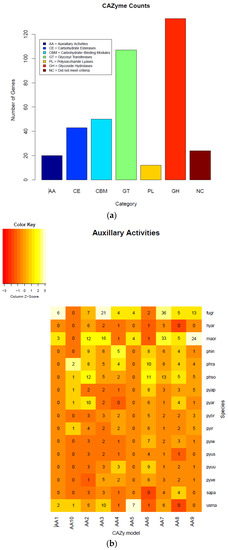- Park, B.H.; Karpinets, T.V.; Syed, M.H.; Leuze, M.R.; Uberbacher, E. CAZymes Analysis Toolkit (CAT): Web Service for Searching and Analyzing Carbohydrate-Active Enzymes in a Newly Sequenced Organism using CAZy Database. Glycobiology 2010, 20, 1574–1584. [Google Scholar] [CrossRef] [PubMed]