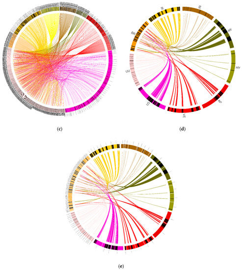 - Krzywinski, M.; Schein, J.; Birol, I.; Connors, J.; Gascoyne, R.; Horsman, D.; Jones, S.J.; Marra, M.A. Circos: An Information Aesthetic for Comparative Genomics. Genome Res. 2009, 19, 1639–1645. [Google Scholar] [CrossRef] [PubMed]