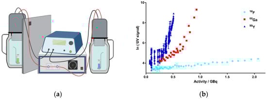 - Schneider, P.B. Determination of specific activity of 32P-labeled compounds using Cerenkov counting. J. Nucl. Med. Off. Publ. Soc. Nucl. Med. 1971, 12, 14–16. [Google Scholar]