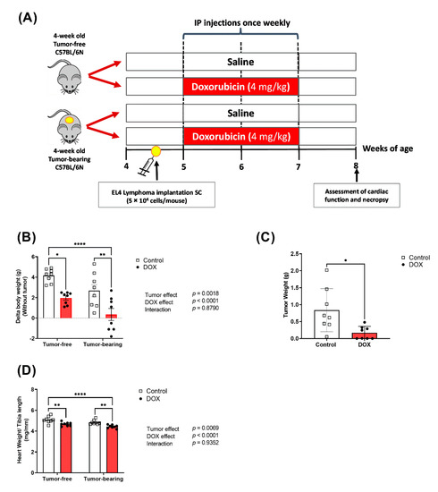 Abdelgawad IY, Grant MKO, Popescu FE, Largaespada DA, Zordoky BN. Doxorubicin Paradoxically Ameliorates Tumor-Induced Inflammation in Young Mice. International Journal of Molecular Sciences. 2021; 22(16):9023. https://doi.org/10.3390/ijms22169023