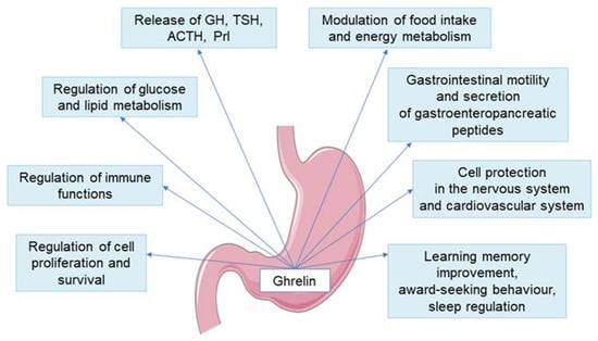 Lewiński, A.; Karbownik-Lewińska, M.; Wieczorek-Szukała, K.; Stasiak, M.; Stawerska, R. Contribution of Ghrelin to the Pathogenesis of Growth Hormone Deficiency. Int. J. Mol. Sci. 2021, 22, 9066. https://doi.org/10.3390/ijms22169066