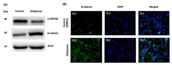 2.3. Low-Dose Ellipticine Reduces the Phosphorylation of GSK-3β and Increases β-Catenin Expression