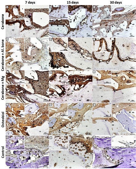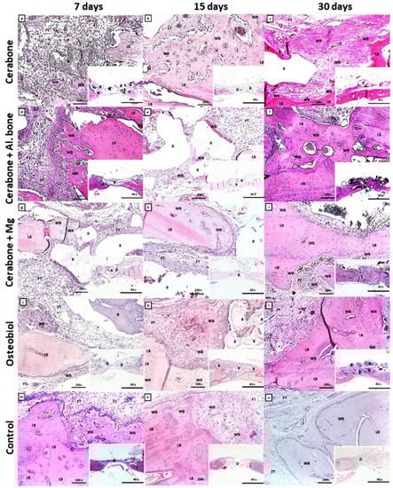 | Cerabone (N = 3) | Cerabone + Al. Bone (N = 3) | Cerabone + Mg (N = 3) | Osteobiol (N = 3) | Control (N = 3) | ||||||||||||