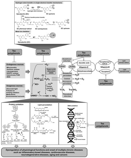 - Yan, Z.; Zhong, Y.; Duan, Y.; Chen, Q.; Li, F. Antioxidant mechanism of tea polyphenols and its impact on health benefits. Anim. Nutr. 2020, 6, 115–123. [Google Scholar] [CrossRef]