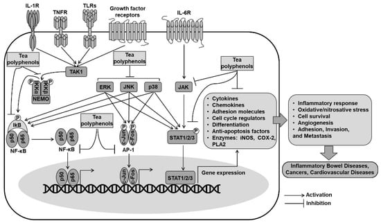 4.2. Inhibition of NF-κB and AP1 Pathways by Tea Polyphenols