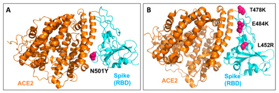 - Williams, A.H.; Zhan, C.-G. Fast Prediction of Binding Affinities of the SARS-CoV-2 Spike Protein Mutant N501Y (UK Variant) with ACE2 and Miniprotein Drug Candidates. J. Phys. Chem. B 2021, 125, 4330–4336. [Google Scholar] [CrossRef]