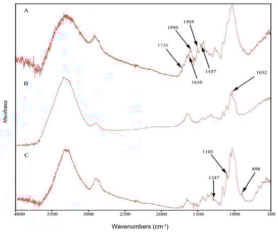 - Garside, P.; Wyeth, P. Identification of cellulosic fibres by FTIR spectroscopy-thread and single fibre analysis by attenuated total reflectance. Stud. Conserv. 2003, 48, 269–275. [Google Scholar] [CrossRef] [Green Version]