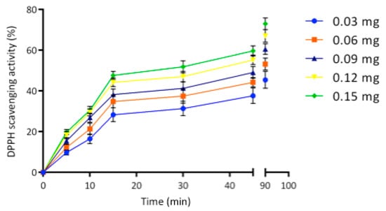 | Total Phenols (mg gallic acid eqs./g extract) | 113.85 ± 5.87 |