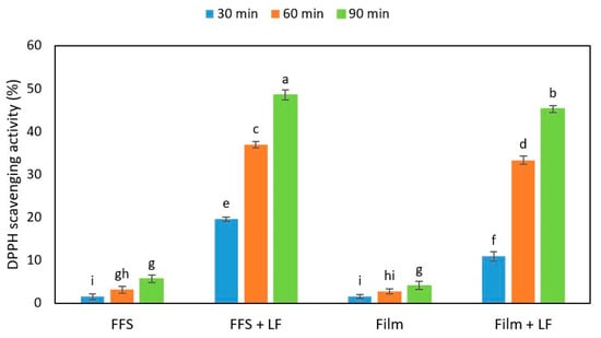 2.4. Antioxidant Activity of Hemp-Protein-Based Films Containing Egagropili Lignin Fraction