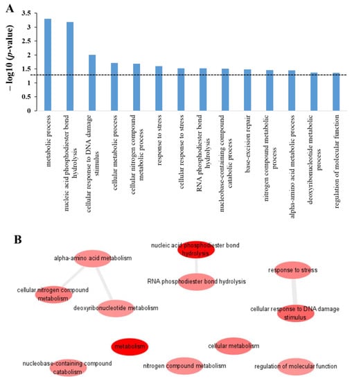 - Supek, F.; Bosnjak, M.; Skunca, N.; Smuc, T. REVIGO summarizes and visualizes long lists of gene ontology terms. PLoS ONE 2011, 6, e21800. [Google Scholar] [CrossRef] [PubMed] [Green Version]